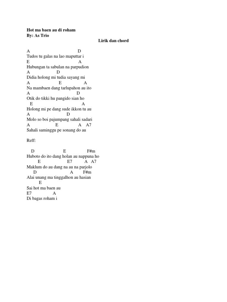 Lao mangurupi haha anggi ibotoki F. C G Am Pos roham hasian F C G Hu dongani pe ho F G C Saleleng ngolukki. Kunci gitar mandar ni dainang Intro.