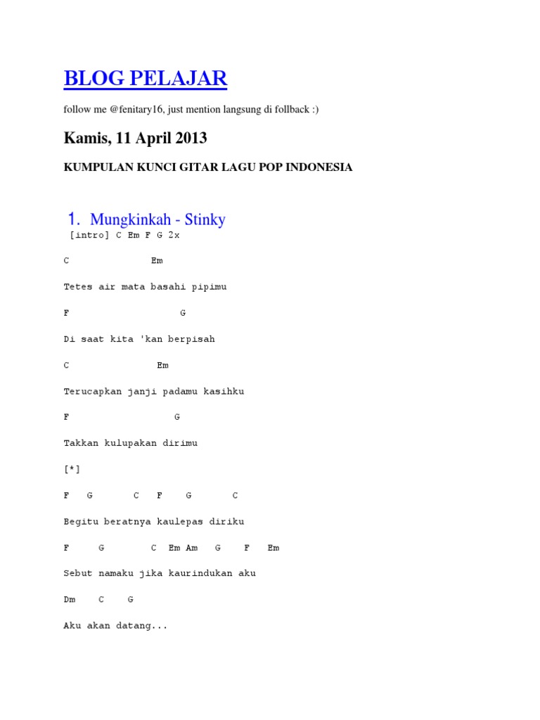 Jadwal Buka Puasa Payakumbuh Hari Ini Sabtu 1 Mei 2021 Disertai Doa Buka Puasa dan Niat Tarawih. Chord Kunci Gitar dan Lirik Lagu Kehilangan - Firman. CHORDS USED C Am F Fm Gm A Dm G CE A7 Em G Bb C A A7 Dm F Gm Fm Intro C Am F Fm hooo oo C Gm Di setiap doaku A Dm di setiap air mataku G selalu ada kamu C Gm Di setiap kataku A Dm ku sampaikan cinta ini G cinta kita bridge F Ku tak akan mundur C E ku tak akan goyah Dm.