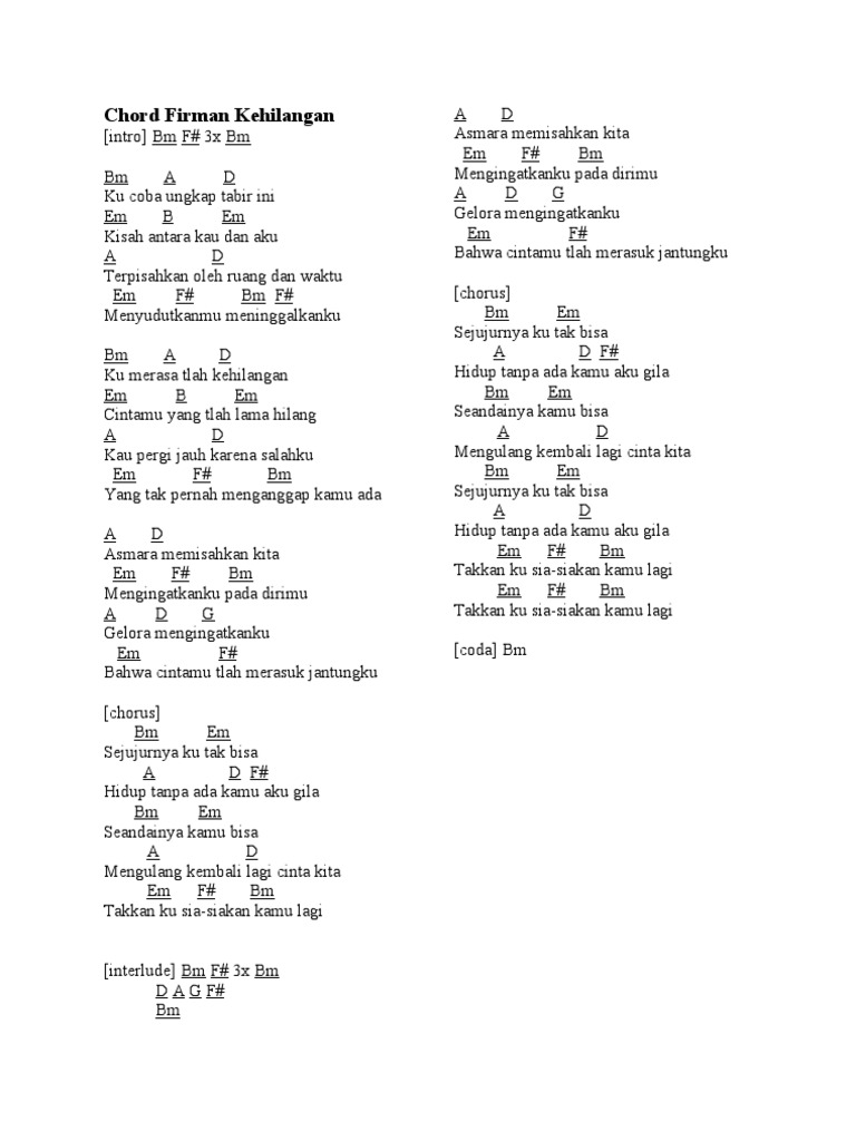 Chord Lagu Firman Kehilangan Info Dan Tips