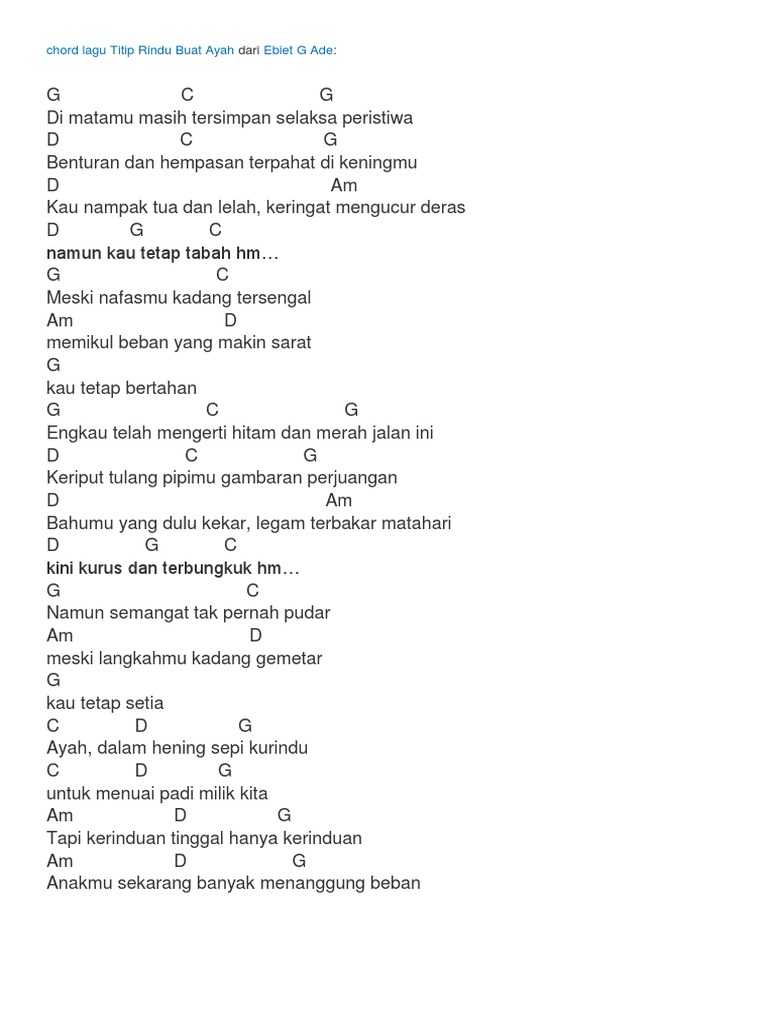 Chord Gitar Dan Lirik Lagu Ebiet G Ade Titip Rindu Buat Ayah Salurankita